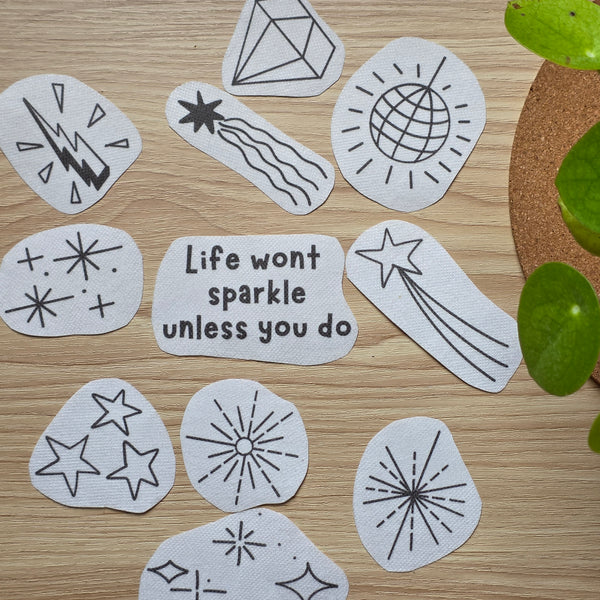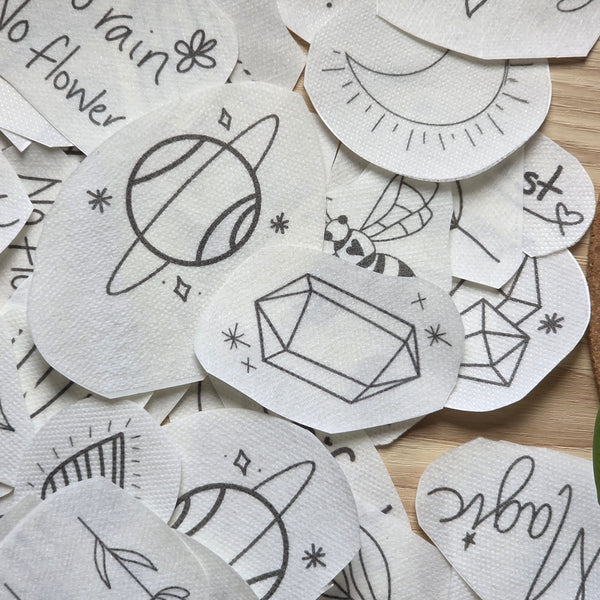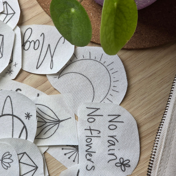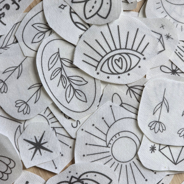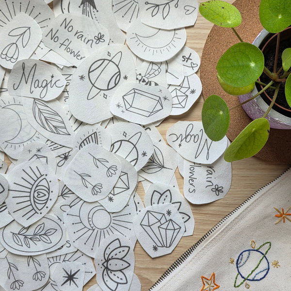 Simply peel, stick and stitch your embroidery onto your chosen fabric, clothing... Hey you can even use them on accessories and canvas shoes!
