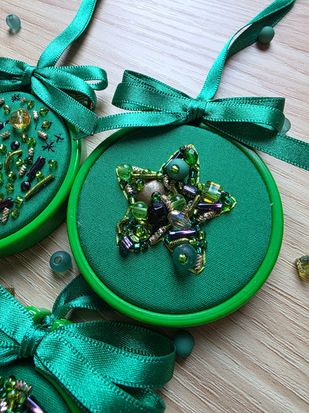 To celebrate the magic of Wicked For Good, I have been inspired to create a collection of enchanting 2" crystal art pieces, featuring shimmering beads, goldwork, sequins and crystals inspired by Elphaba and Glinda.